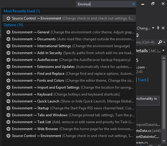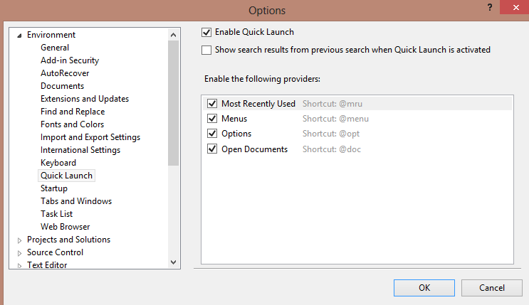 There is a little add on included in Visual Studio 2012 which can make our life easier, it is called Quick Launch and it does exactly what the name indicates, it helps us to find what we are looking for.